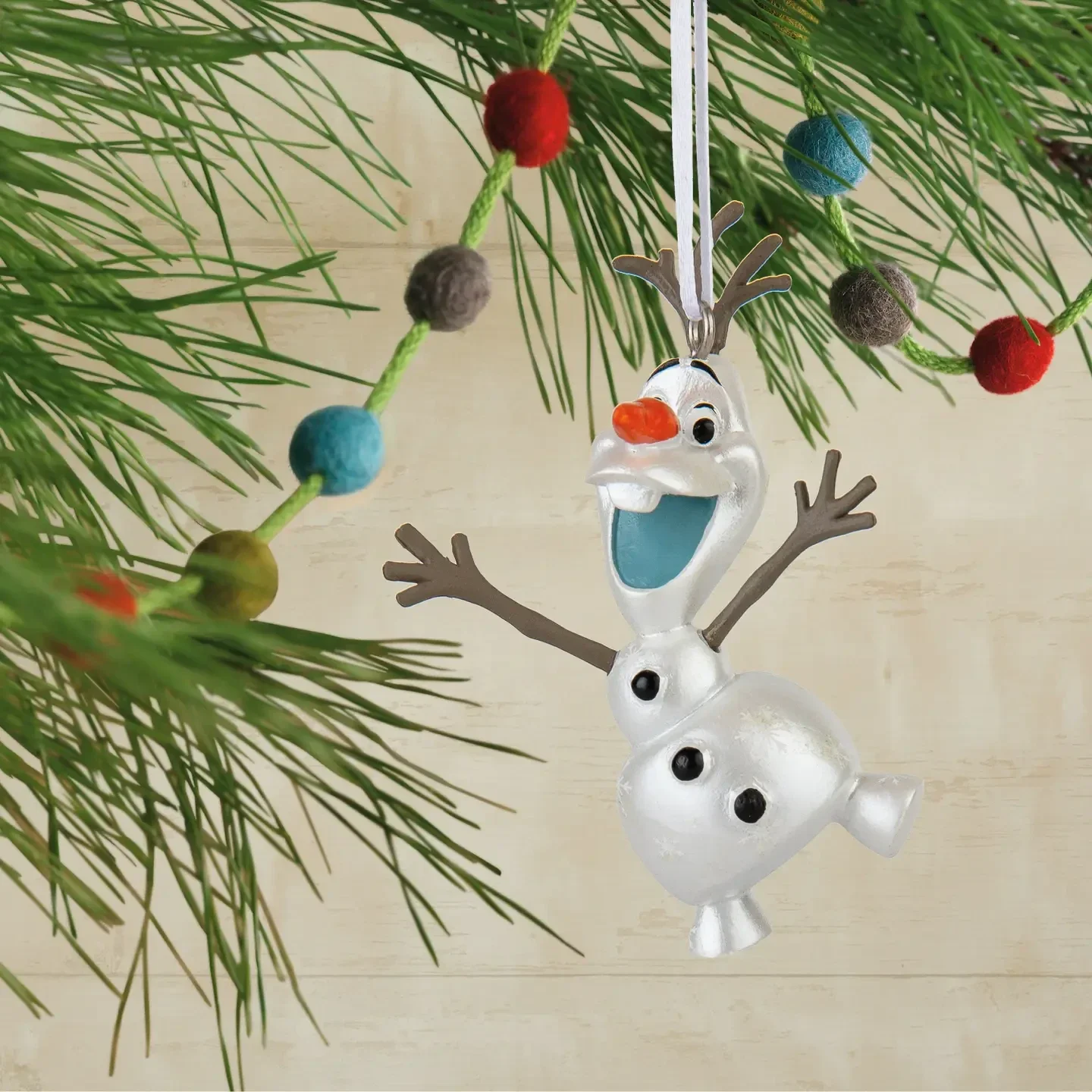 Durable, lightweight, and easy to hang, this Olaf ornament adds a playful and festive touch to any Frozen-themed décor or collection.